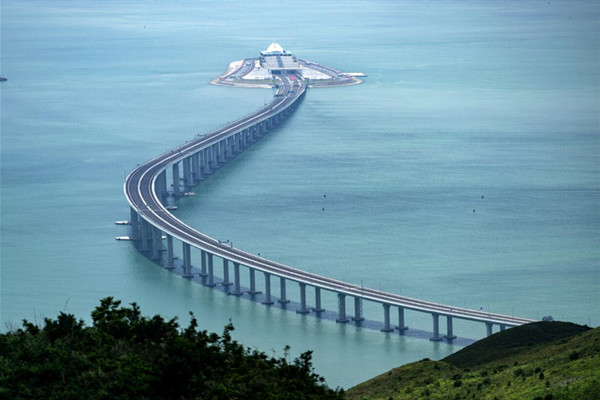资料图:从香港大屿山远眺港珠澳大桥香港连接线与东人工岛。 中新社