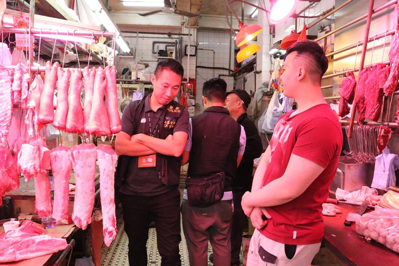 图:探员在佳宝超市附近的猪肉档内调查