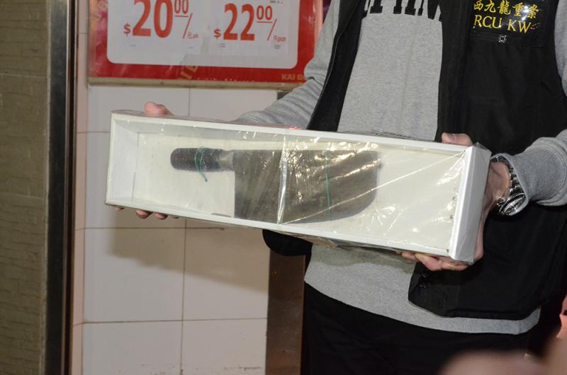 图:警方检走疑兇伤人的16吋猪肉刀