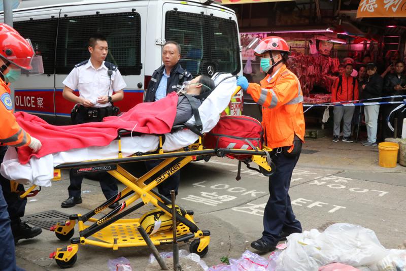 尾随赶至超市的警员向疑兇两次警告:“立即放低把刀。”惟他未有理会,还企图向刘劈第二刀。男警鸣枪制止,疑兇右胸腹中枪倒地。大批警员增援赶至,封锁现场调查,救护员把中枪疑兇送院,经抢救后证实不治;而后脑中刀受伤的经理与一名受惊女职员,清醒送院治理。