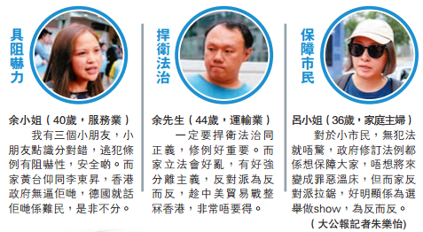 我在台湾出生和长大,来香港二十多年,觉得香港法律制度比台湾更健全,如果说修订《逃犯条例》后,移交逃犯仍由香港法院把关,这令人很有信心。如果不修订《逃犯条例》,杀人犯都跑来香港,那像什么样子?香港因此变成“犯罪天堂”,这反而是极大的隐忧。