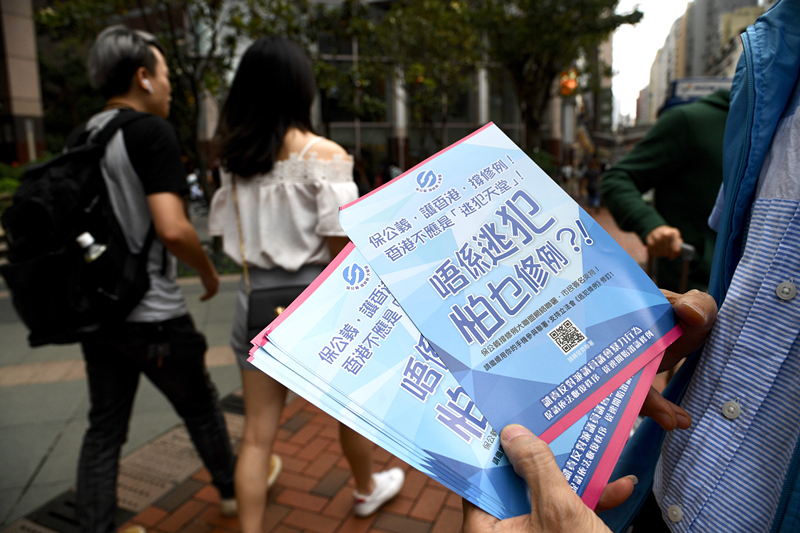 资料图:5月25日,大联盟於多区派传单支持政府修例。香港中通社图片