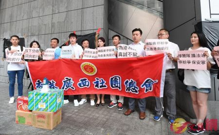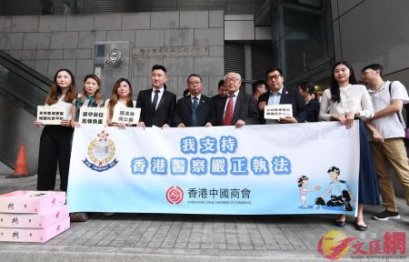 香港中国商会、香港广西社团总会、香港佛山社团总会等团体之后亦陆续抵达,吶喊“支持警察,严正执法”的口號。