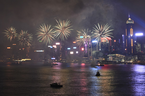 2月6日,大年初二,香港维多利亚港夜空上演“农歷新春烟花匯演”。香港中通社图片