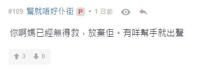 香港新闻网8月20日电 8月18日,一位香港青年在香港某论坛发帖“求救”,称自己瞒著家人参加示威活动,家人知道后断了他的口粮,无奈只好向“巴打(意为兄弟)”求救。