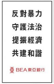 东亚的广告则以四句“反对暴力,守护法治,提振经济,共建和谐”16个字作呼吁。